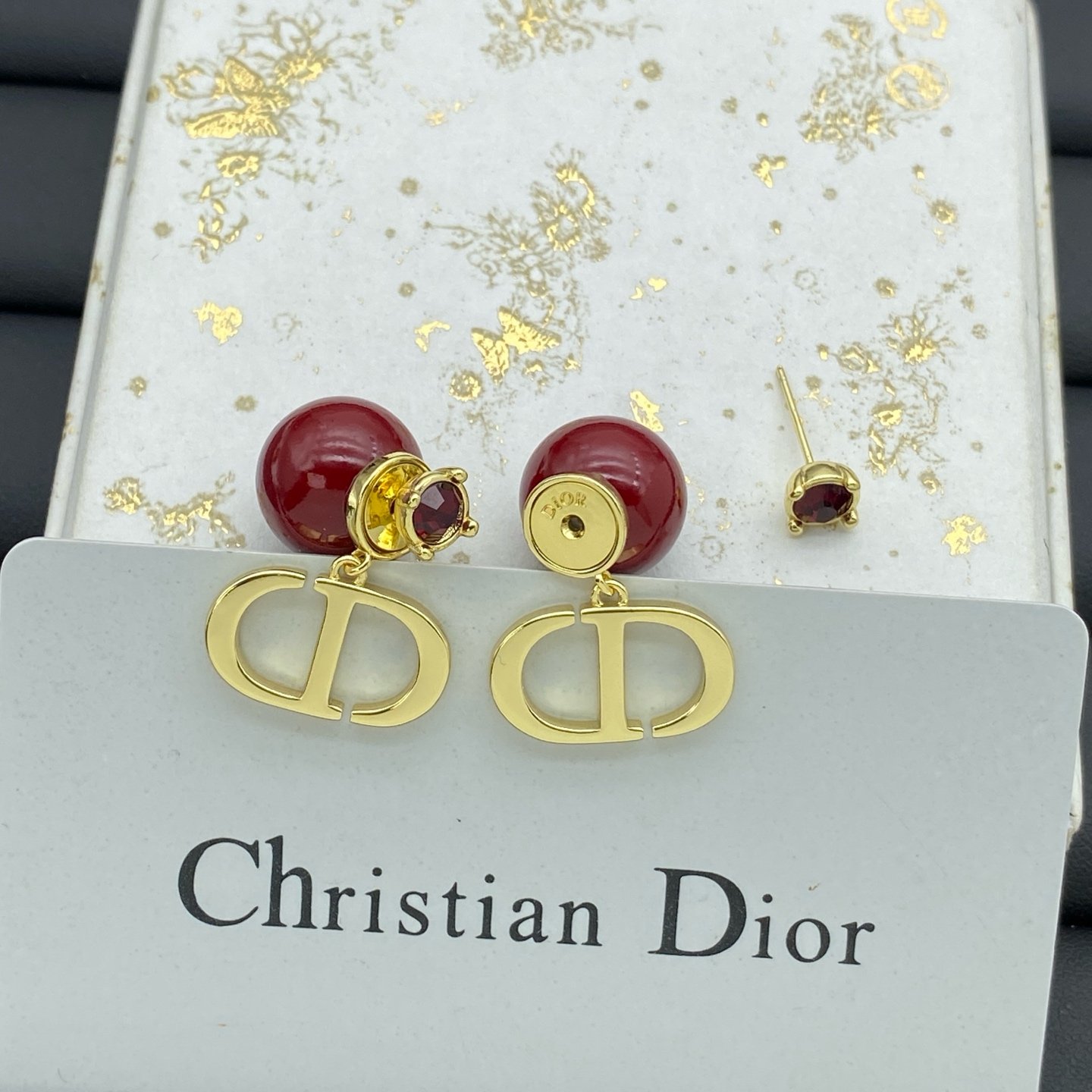 CD Icon Red Pearl & CD Logo Earrings