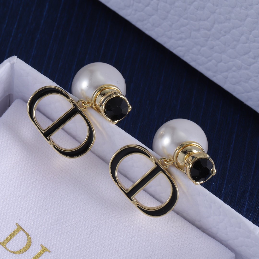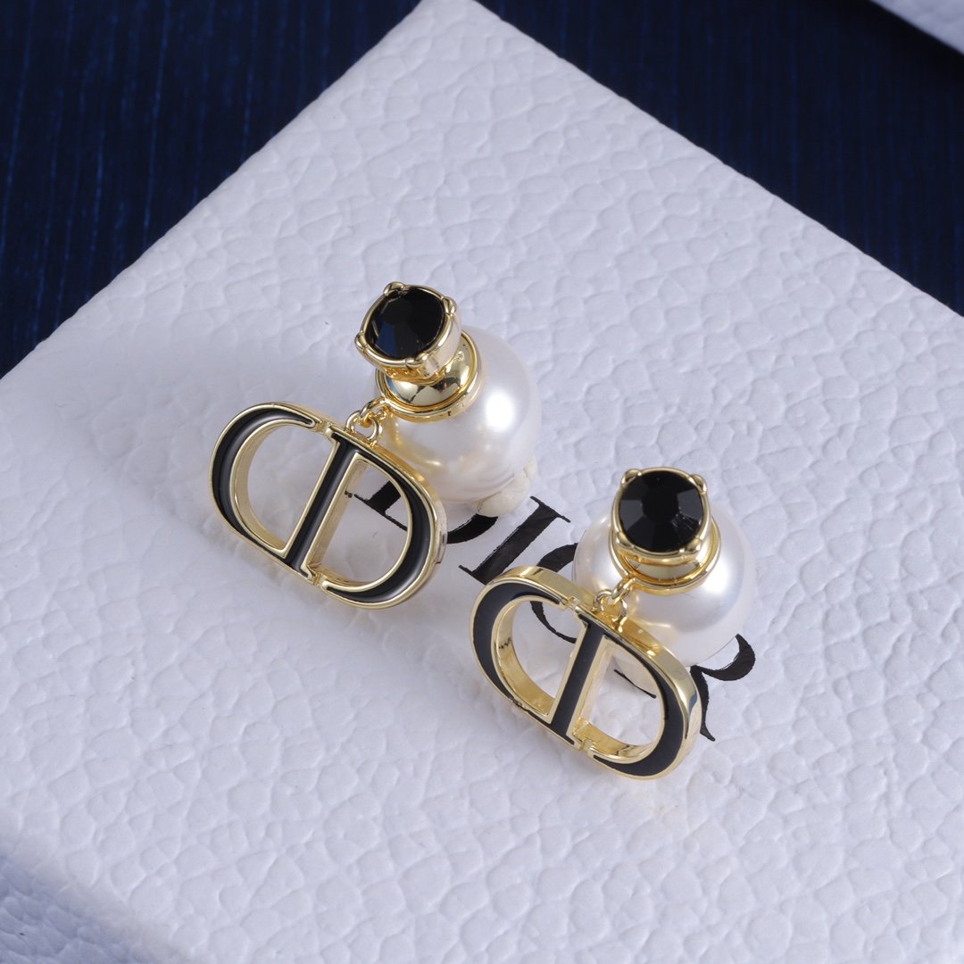 Dior CD Pearl and Black Stone Earrings