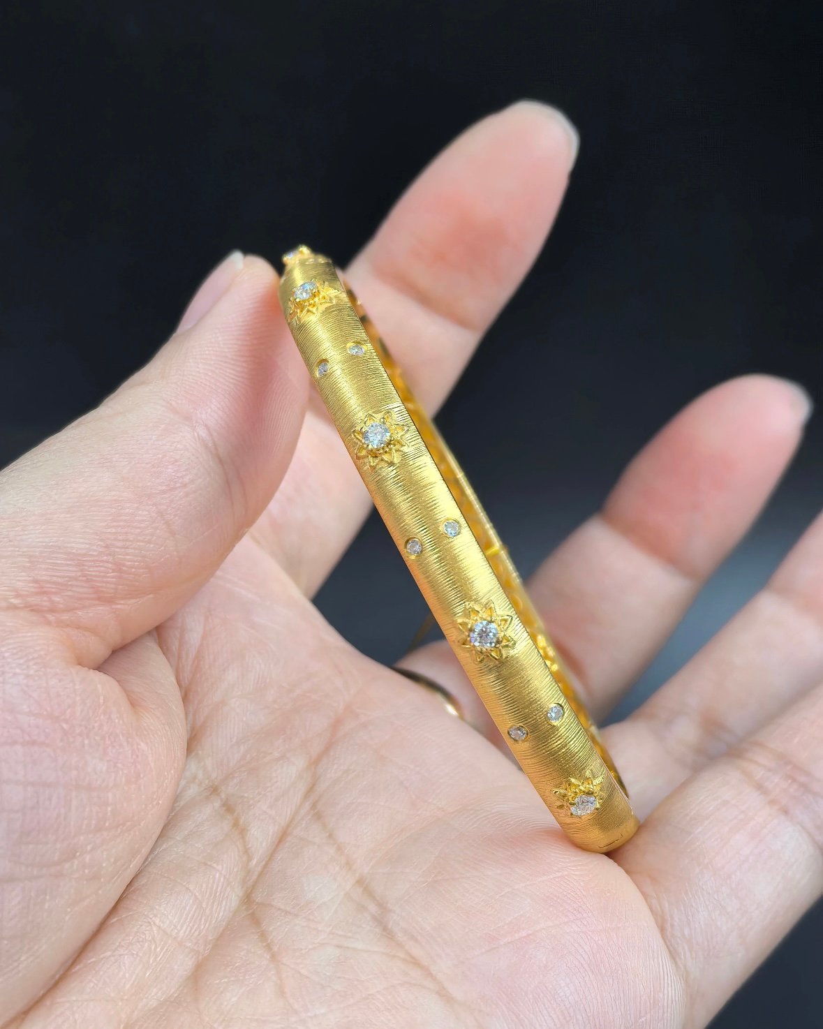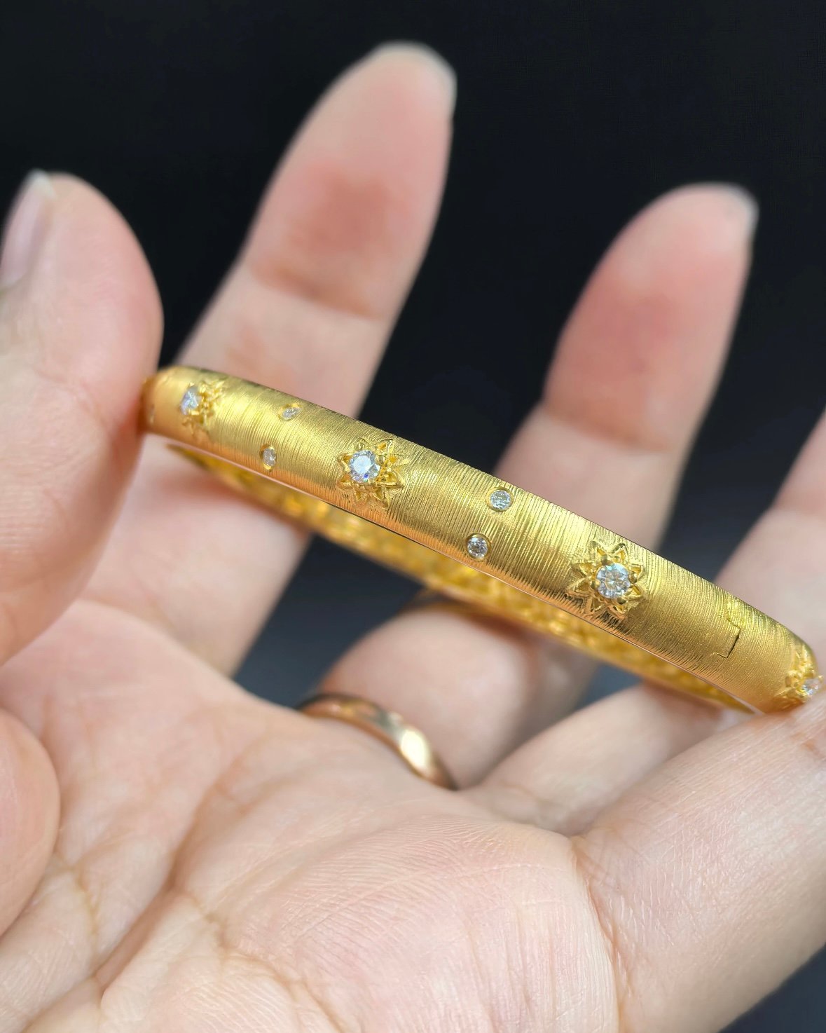 Buccellati Opera Galileo Two-Tone Gold Diamond Rotating Flower Pendant Necklace