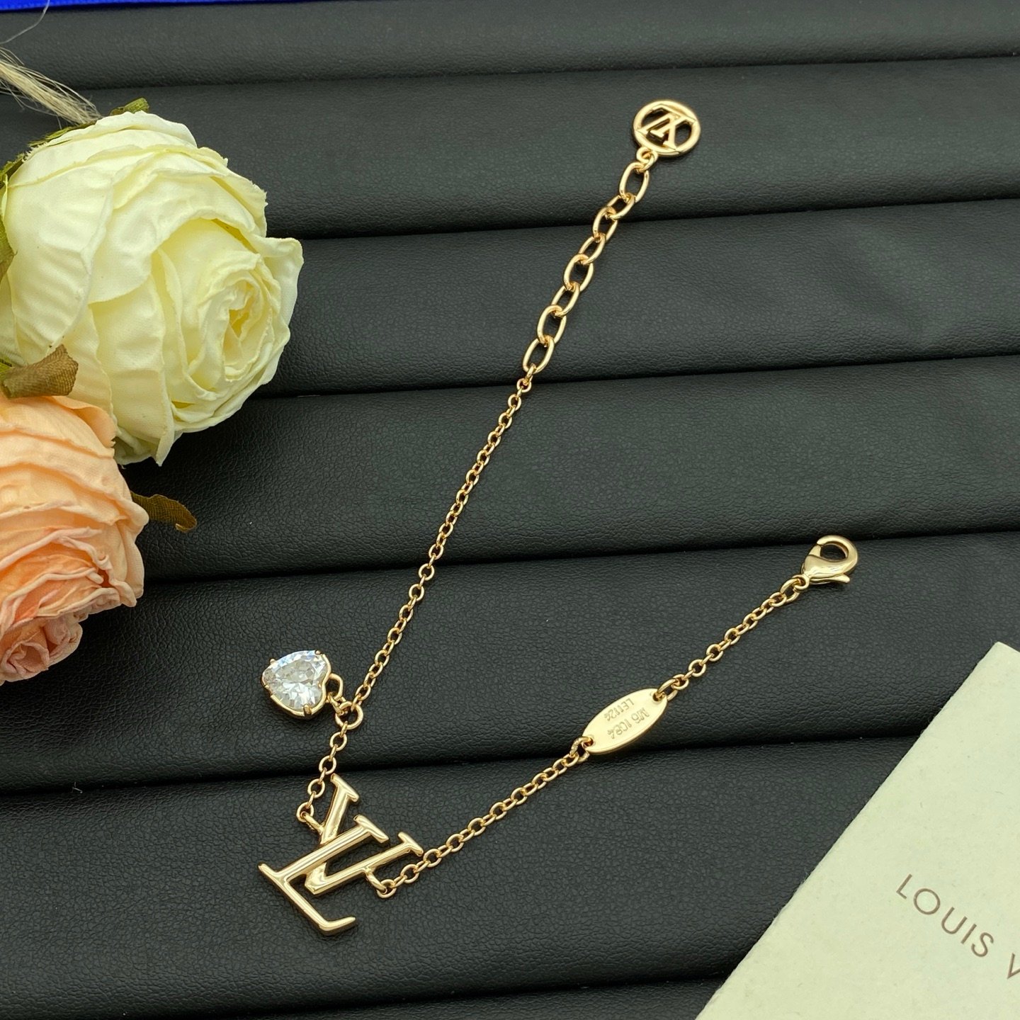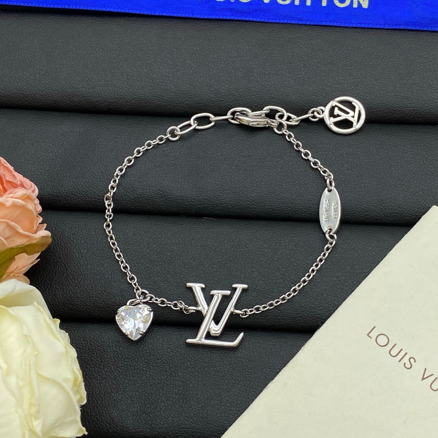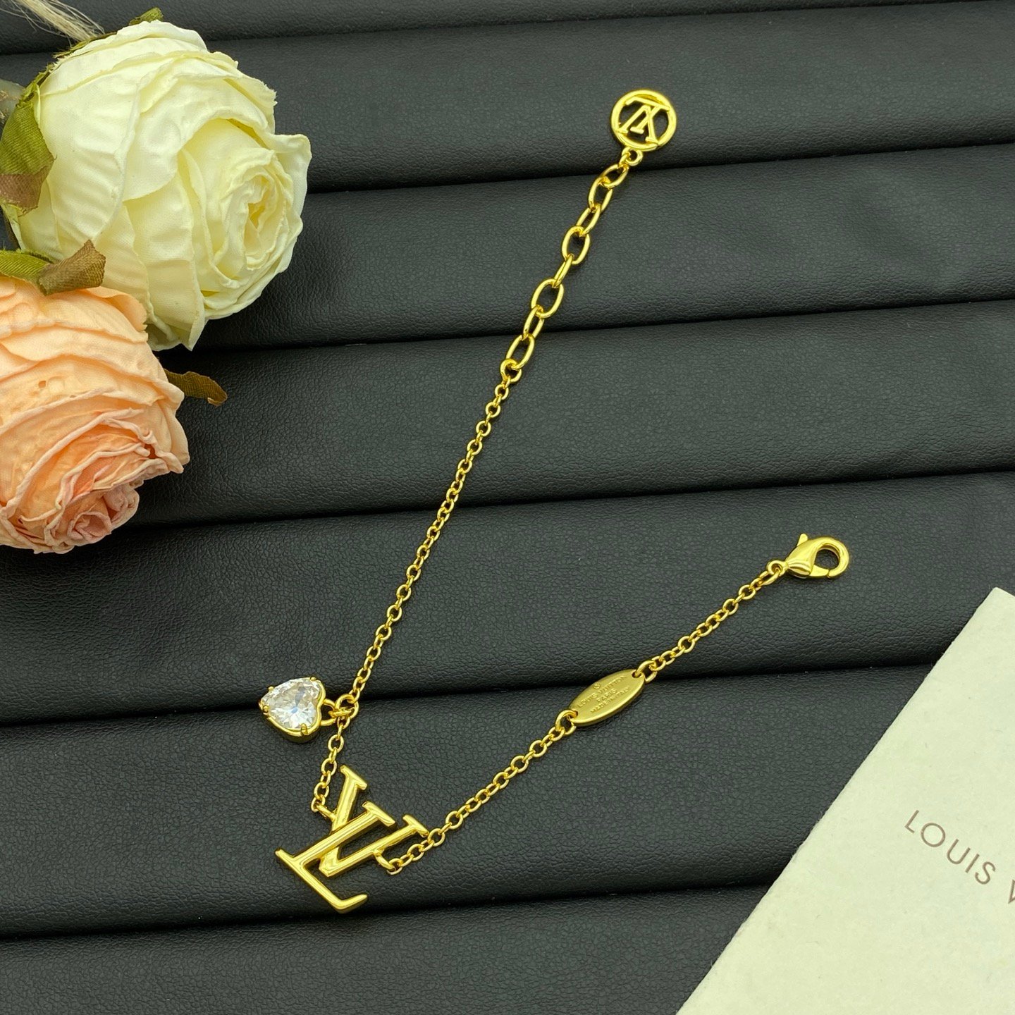 Louis Vuitton (LV) Logo Heart Charm Bracelet