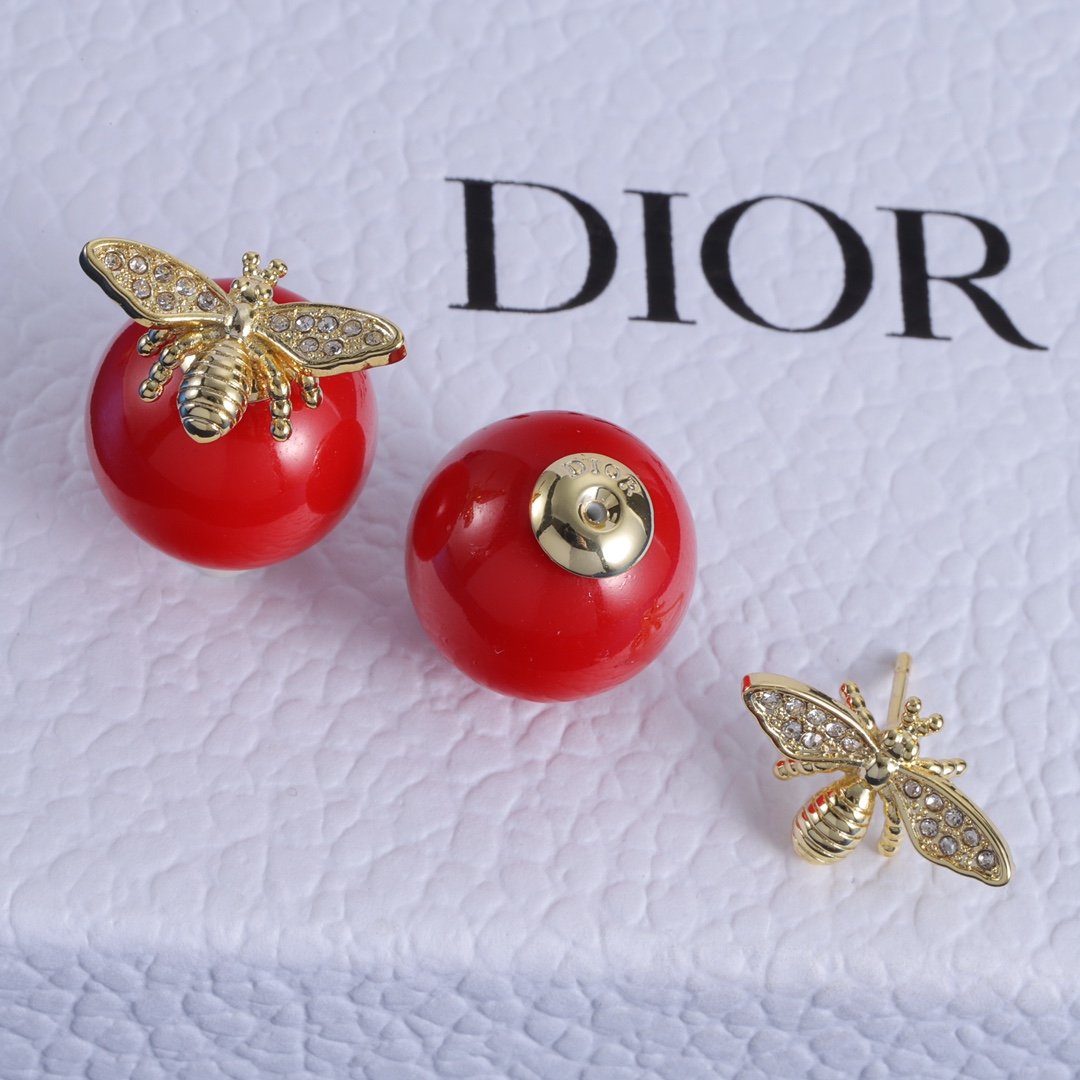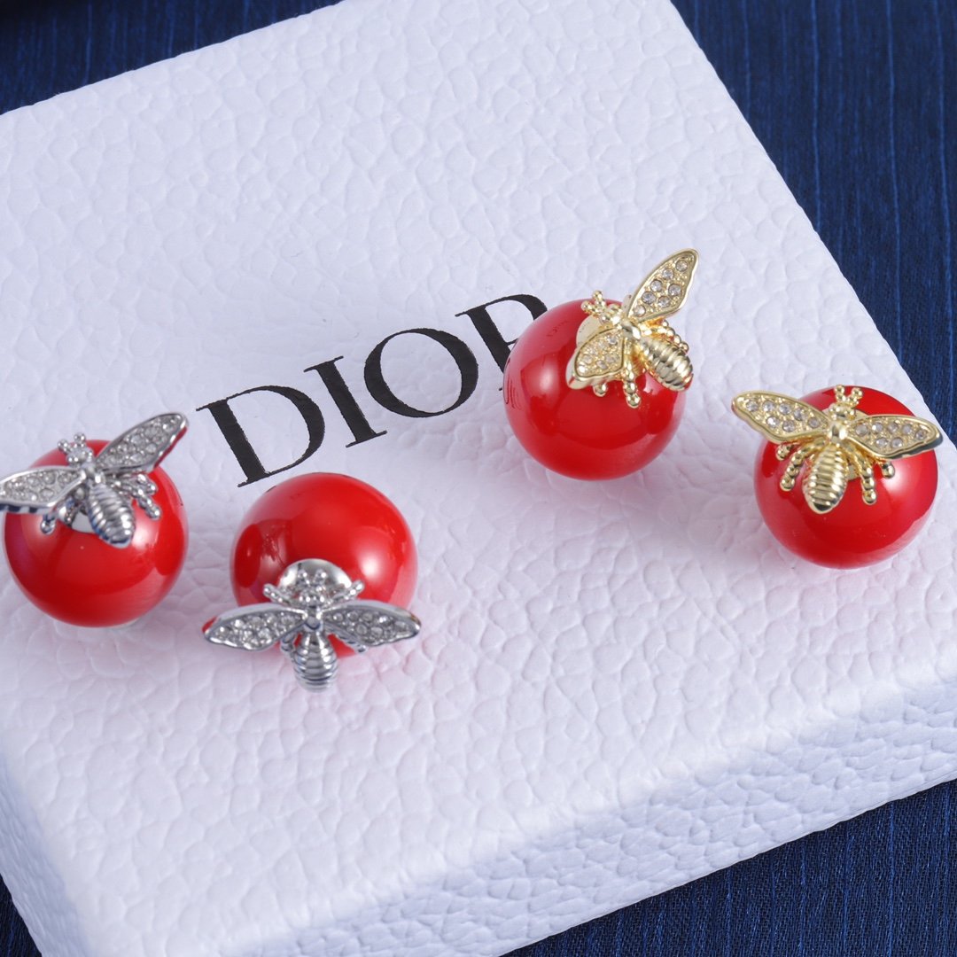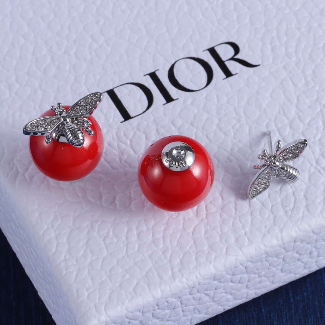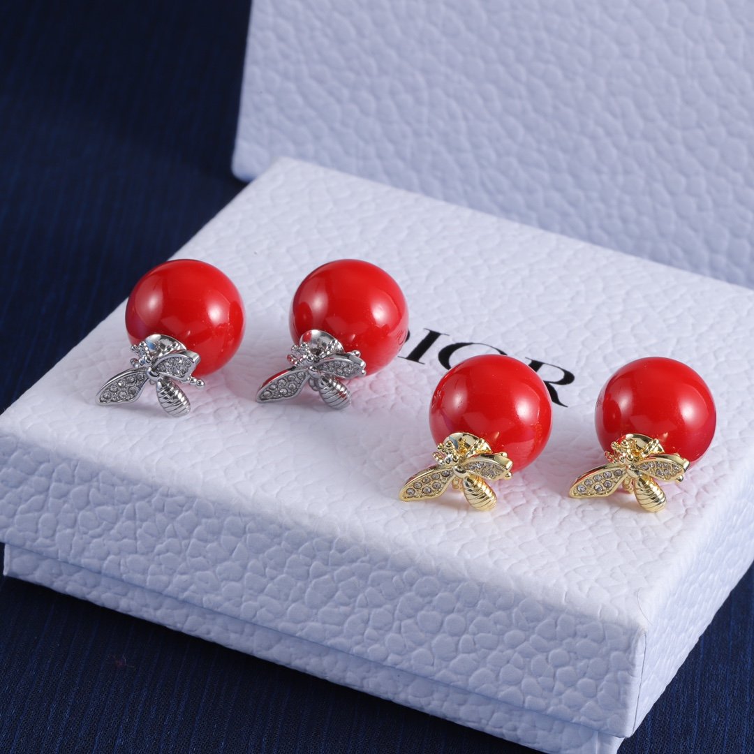 Rose Dior Pré Catelan Bee & Red Pearl Earrings