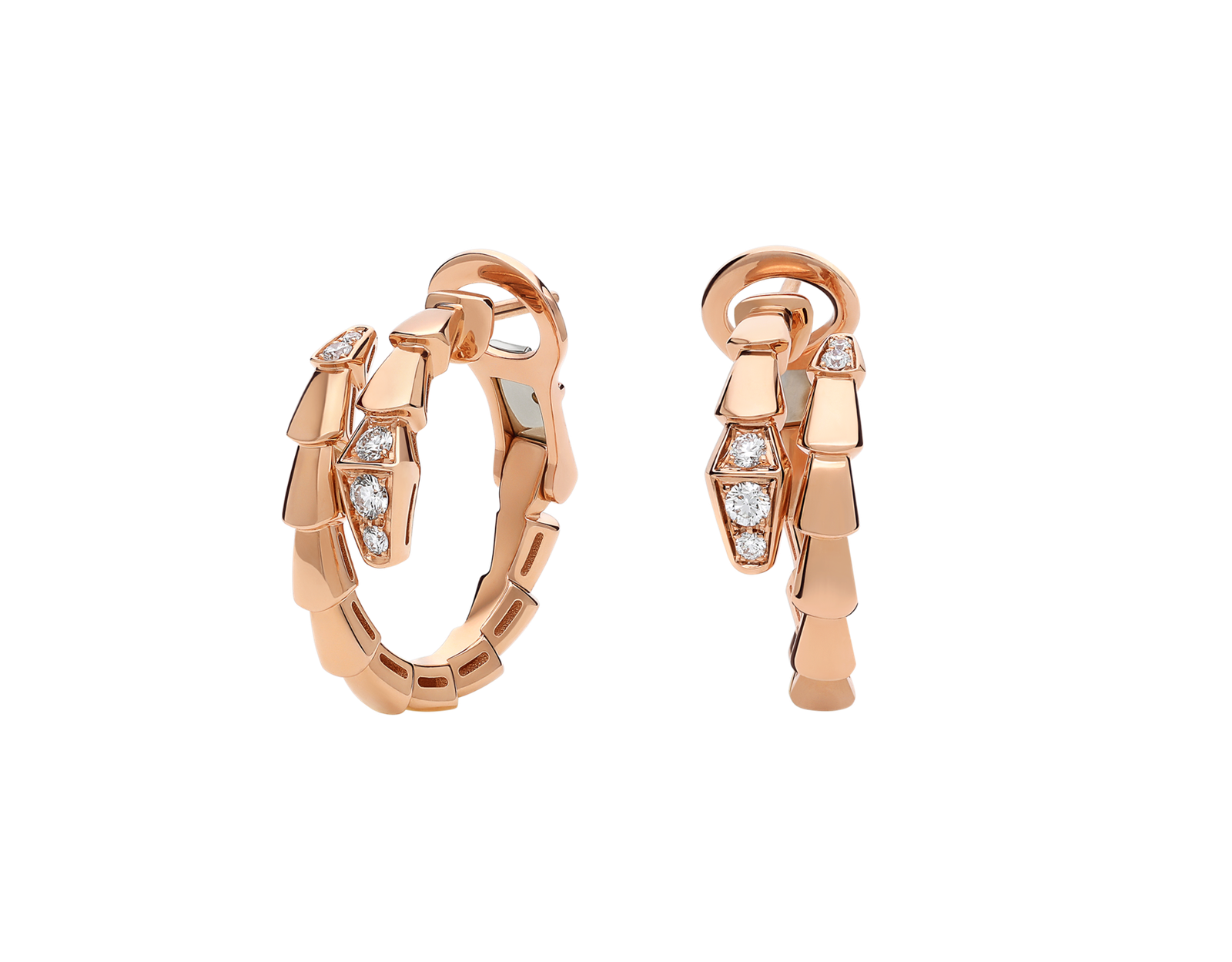 Serpenti Viper 18 kt Rose Gold Hoop Earrings Set with Demi Pavé Diamonds