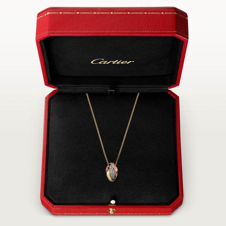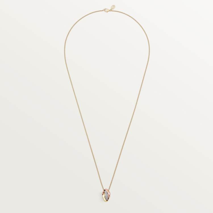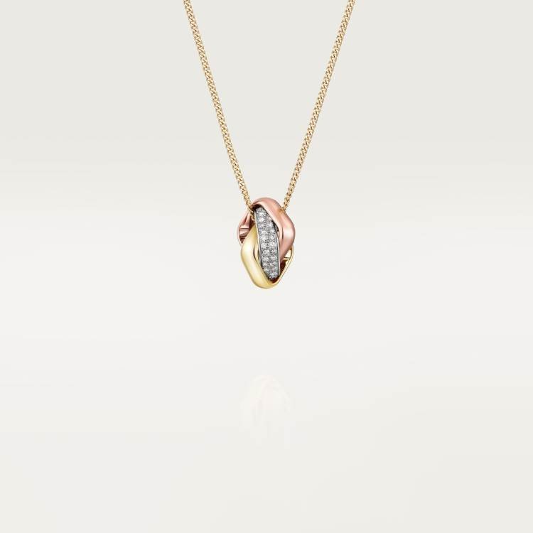 Trinity Pillow-Shaped Pendant, Half-Paved With Diamonds, Tricolor Gold