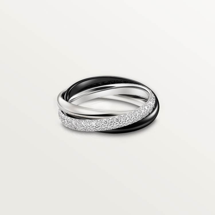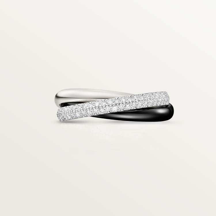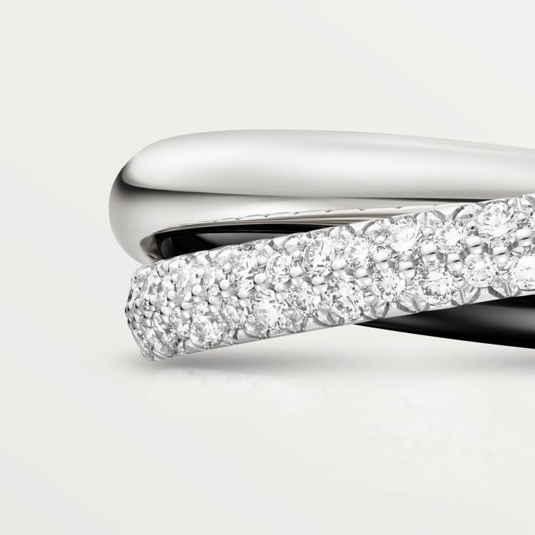 Trinity Ring, Ceramic, Small, Half-Paved with Diamonds, Precision Ceramic