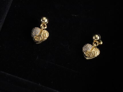 Chrome Hearts Gold Heart Stud Earrings with Diamonds
